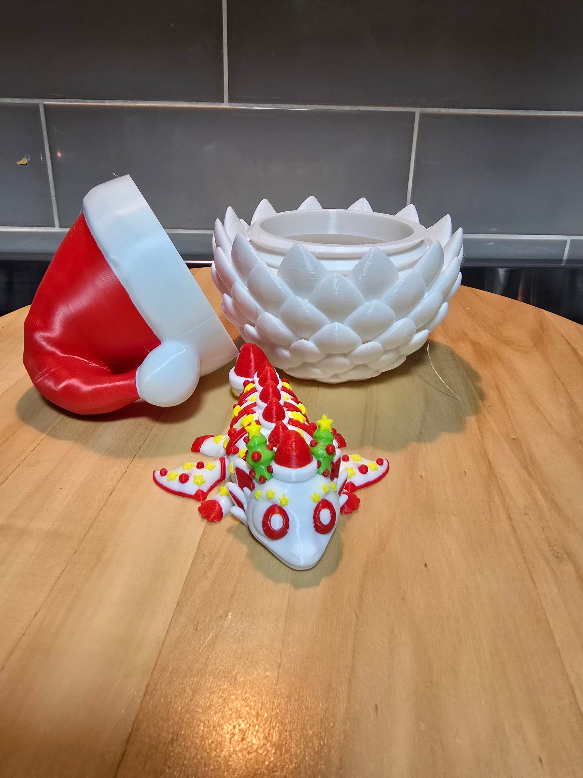 πŸŽ„ 3D Printed Santa Hat Dragon Egg – Santa Hat Dragon Inside πŸŽπŸ‰