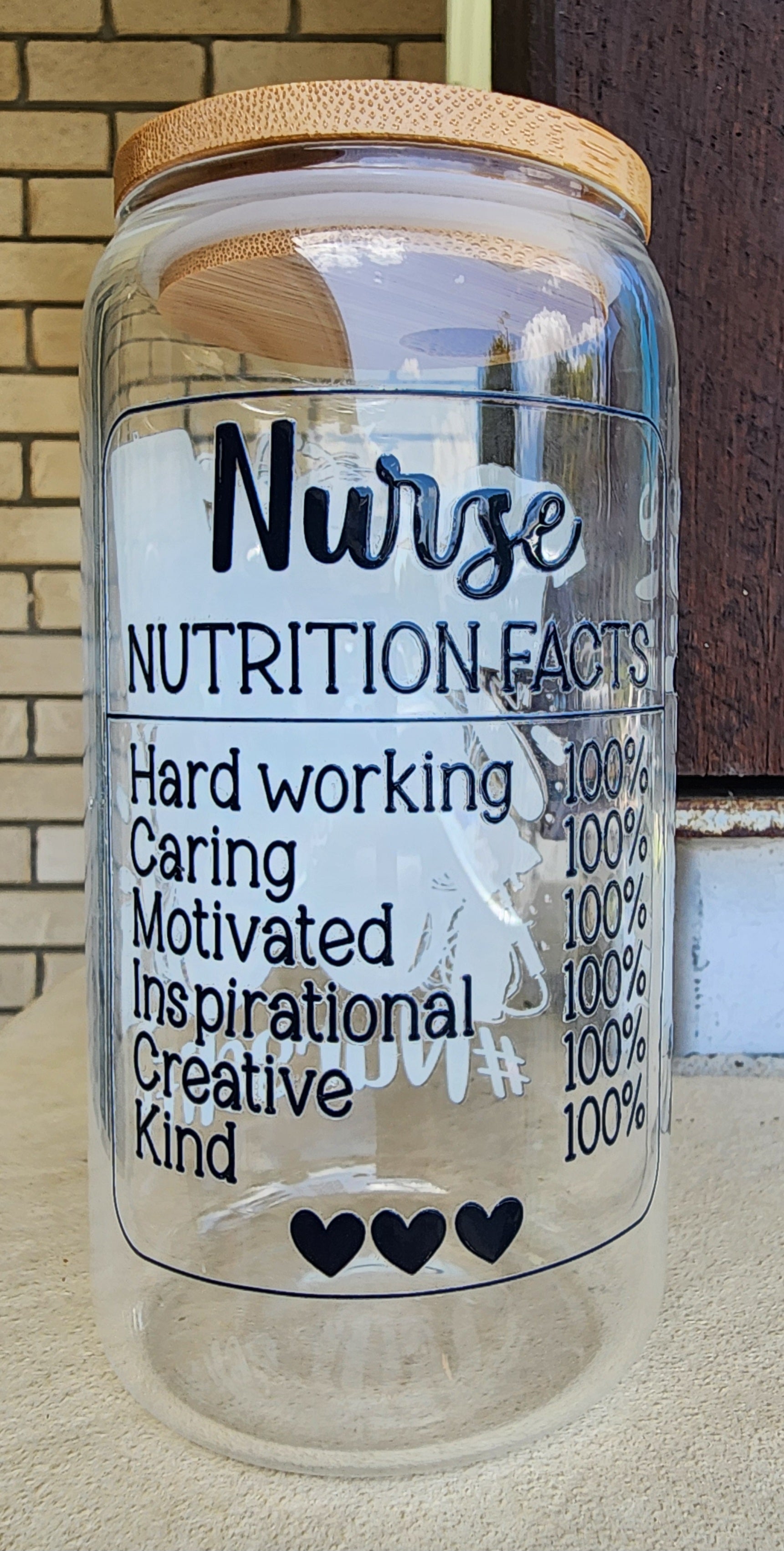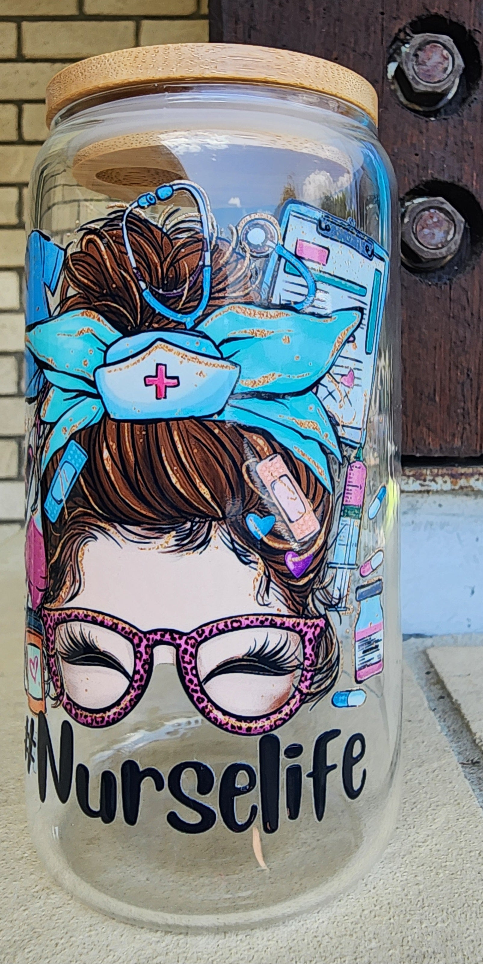 Enjoy your cold beverage in this 16oz clear libbey glass decorated with a Nurselife wrap. Great present for a busy nurse that needs to stay hydrated on a long shift.